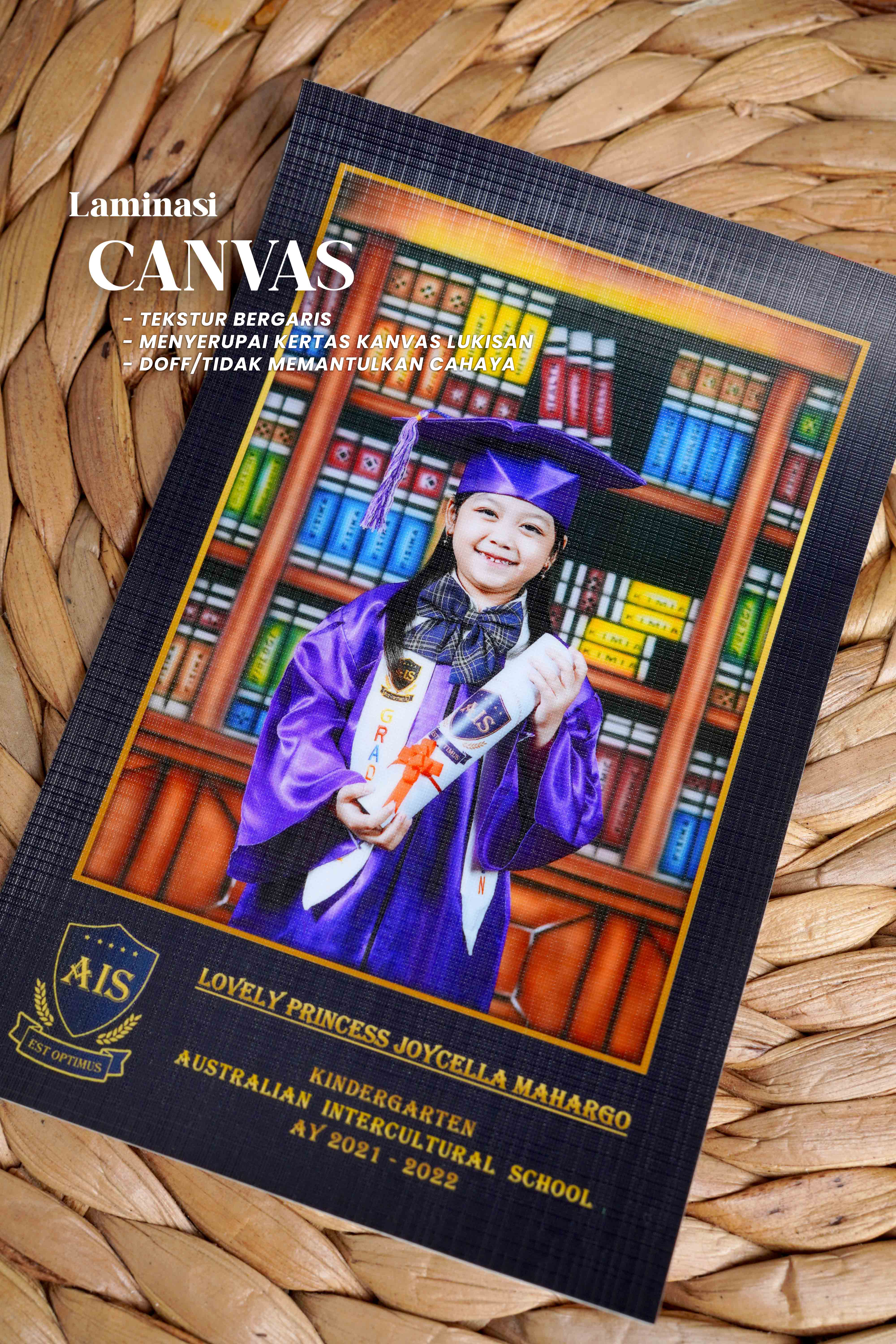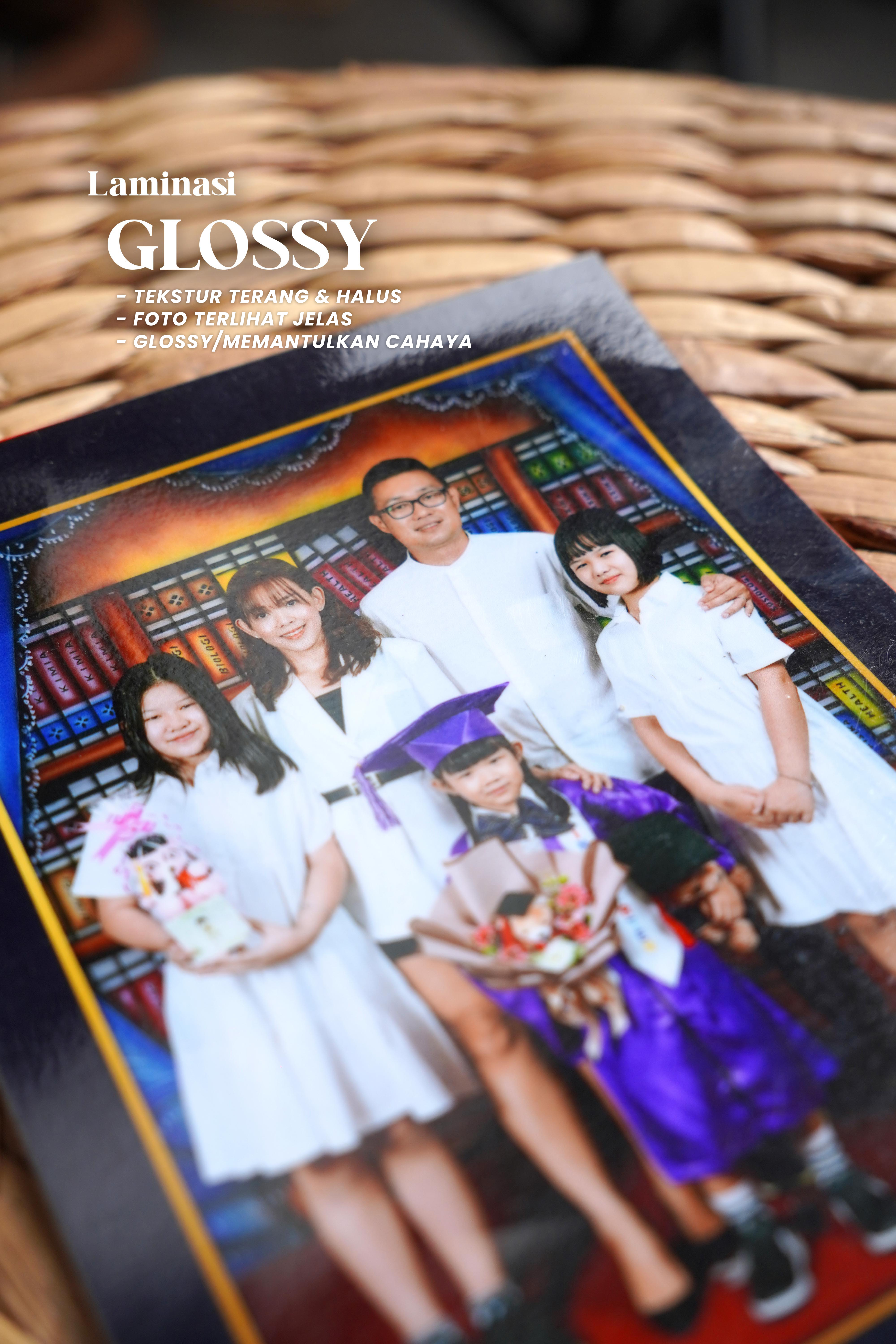 Foto dicetak menggunakan mesin khusus cetak Foto lalu dilapisi dengan laminasi, tersedia laminasi Canvas/Doff/Glossy sehingga daya tahan foto lebih awet & Waterproof terhadap suhu ruangan. Salah satu kelebihan lainnya foto bisa langsung dibersihkan menggunakan lap basah jika kotor atau berdebu tanpa khawatir foto akan luntur atau berubah warna, jika foto ingin di pasang menggunakan Bingkai maka foto bisa lansung dipasang tanpa harus menggunakan kaca sehingga foto terlihat lebih jelas dan tajam di banding dengan menggunakan kaca.. Swipe foto di bawah untuk melihat beberapa sample laminasi